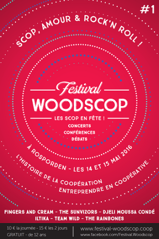 Sous l’impulsion de plusieurs Scop finistériennes (Appaloosa, CAE 29, LGF, Mot Compte Triple, Tri Martolod), la première édition du festival Woodscop - Les Scop en fête ! se tiendra à Rosporden les 14 et 15 mai 2016.